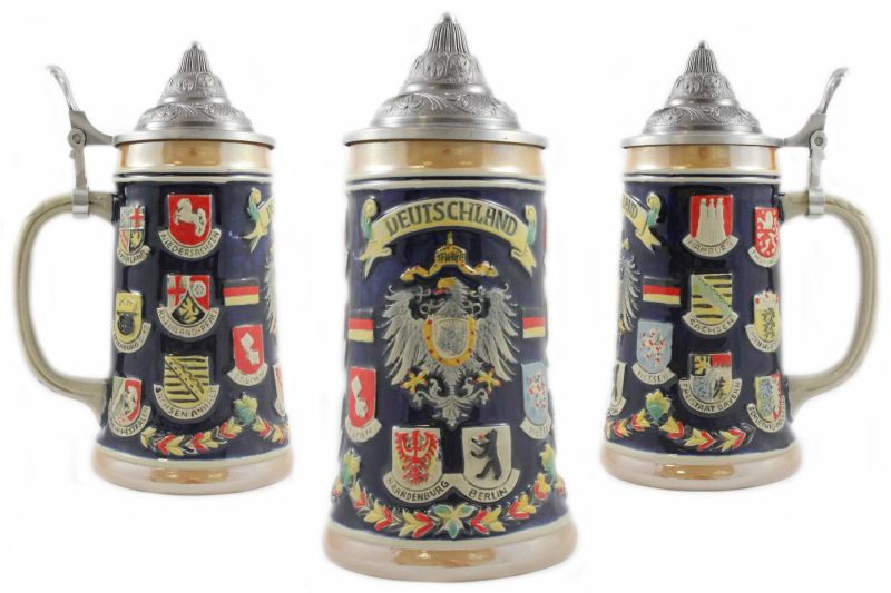 EVERSTYLE Bierkrug 0,7L Mit Deckel - Deutscher Steinkrug In Blau, Perfekt Als Geschenk