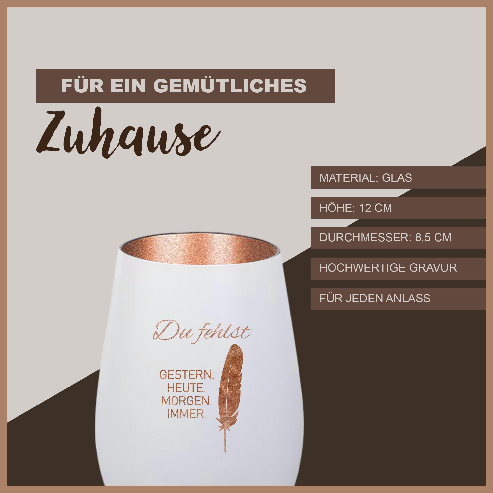 Windlicht Mit Gravur 'Du Fehlst' - Moderner Teelichthalter In Weiß-Bronze