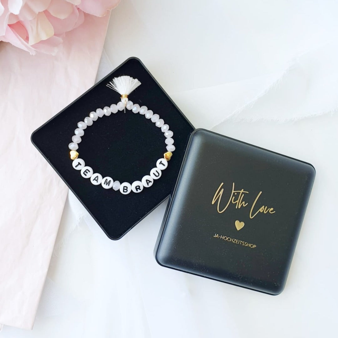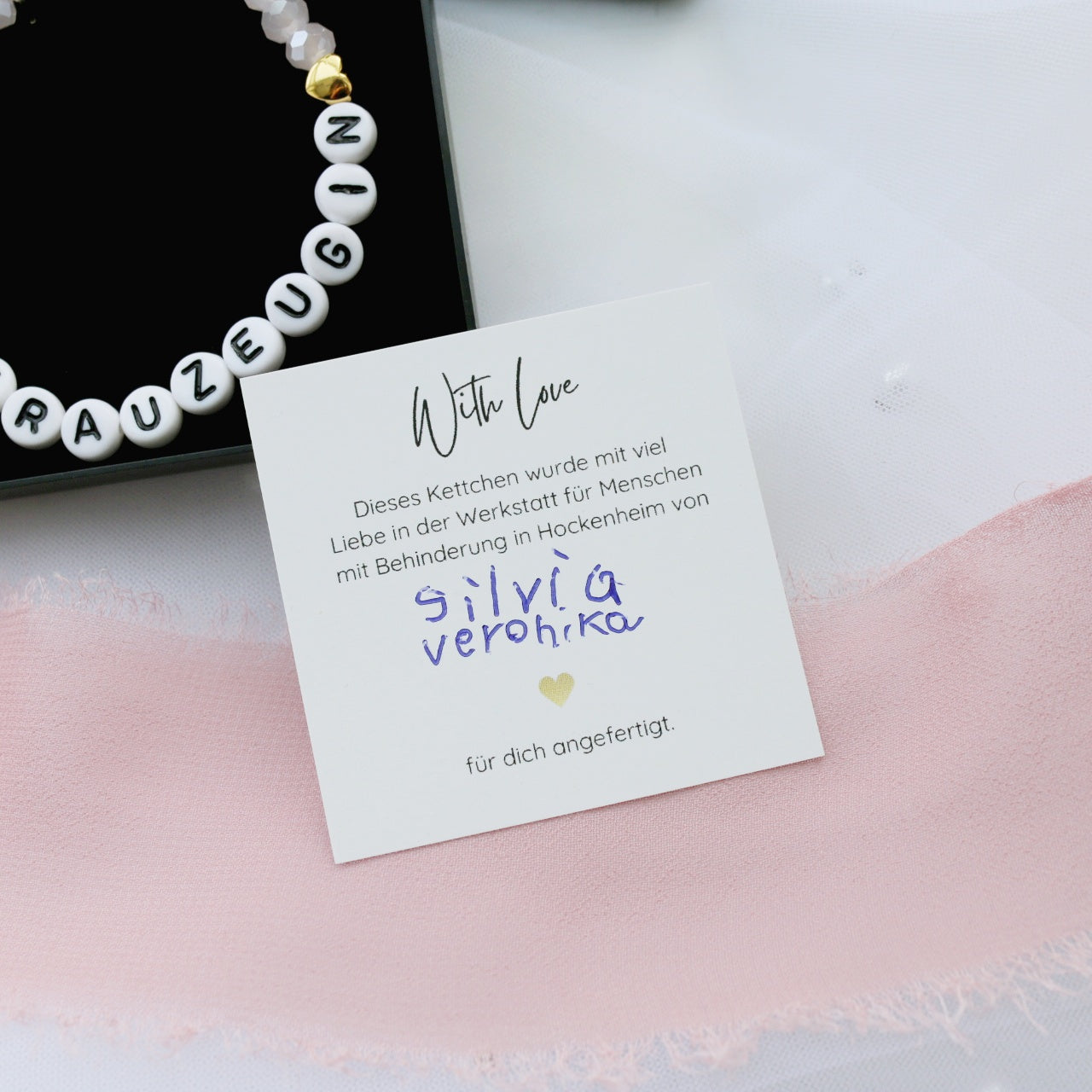 Perlenarmband 'Trauzeugin' Weiß - Handgefertigtes Brautjungfern Armkettchen