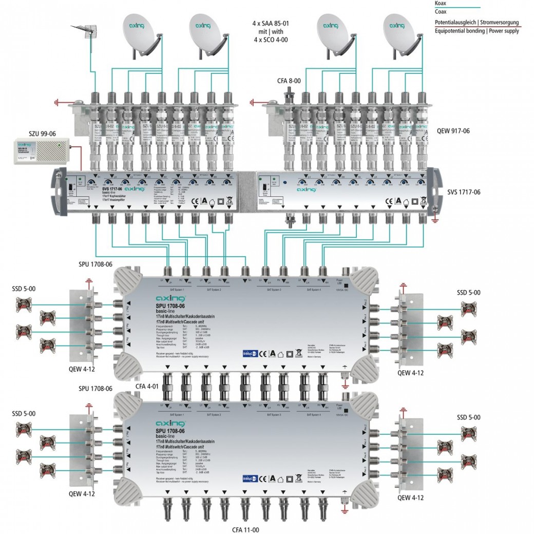 Axing SVS 550-09N Kopfverstärker - 5-Fach 20dB Für SAT & Kabel-TV