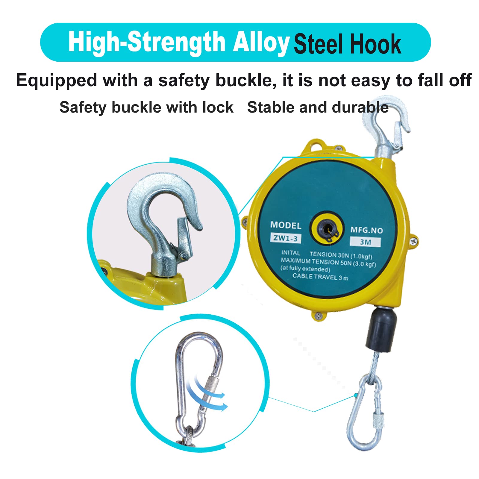 Hey Handwerker, dieser Federzug ist ein echter Game-Changer! Mit 2m Seillänge und einer Tragkraft von 0,6-3,0kg hält er eure Werkzeuge praktisch schwerelos. Aus hochfestem Stahl gebaut, mit Sicherheitshaken die nicht versehentlich abfallen. Einfach an der Decke oder Wand befestigen, Werkzeug einhaken und schon müsst ihr nicht mehr das ganze Gewicht tragen. Perfekt für Werkstätten, Autowerkstätten oder Fabriken. Spart richtig Kraft und beugt Ermüdung vor! Die Installation ist super einfach - alles Notwendige liegt bei. Ob Akkuschrauber, Lötkolben oder andere Werkzeuge - damit habt ihr immer alles griffbereit ohne lästiges Hinlegen und Aufheben. Einfach genial für alle, die viel mit Werkzeugen arbeiten! Spart nicht nur Zeit, sondern schont auch den Rücken. Einfach ein praktisches Helferlein für jeden Profi und Hobby-Handwerker!