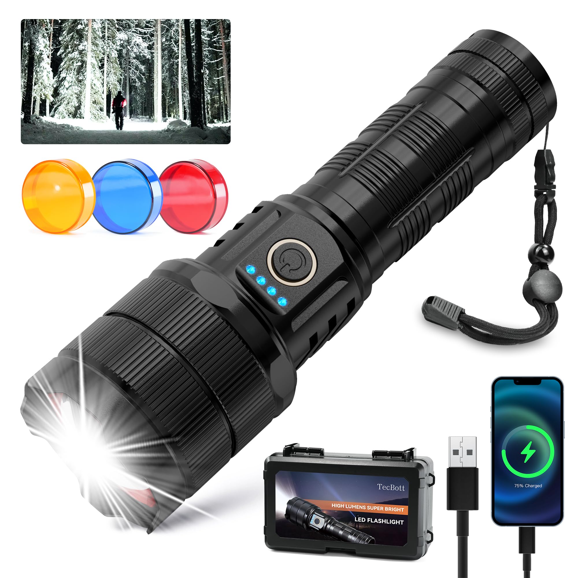BEYSTE LC223 Taschenlampe - Megahell Mit 1.000.000 Lumen, USB-C Aufladbar Für Outdoor-Abenteuer