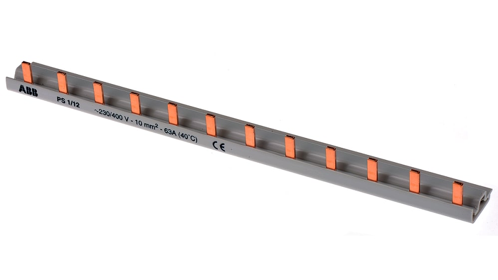 Elektriker und Heimwerker, diese ABB Sammelschienen sind Profi-Qualität für eure Elektroprojekte! Im 2er-Pack geliefert - perfekt für verschiedene Installationen oder als Ersatz. Die Sammelschiene PS 1/12 ist für 1-phasige Anwendungen konzipiert.\n\nTechnische Daten: Bemessungsstrom 63 A, Betriebsspannung bis 440 V, isolierte Ausführung. Mit 216 mm Länge und Teilungsmaß von 17,6 mm - passt für bis zu 12 Geräte. Querschnitt 10 mm² für zuverlässige Stromführung.\n\nHergestellt in Deutschland mit der Qualität, die man von ABB gewohnt ist. Ideal für Verteilerkästen, Sicherungsautomaten und andere Elektroinstallationen. Die Stift-Verbindung sorgt für sicheren Kontakt.\n\nEinfach zu montieren und langlebig im Betrieb. Perfekt für den professionellen Einsatz oder anspruchsvolle Heimwerker-Projekte. Ursprungsland Deutschland - Made in Germany Qualität.\n• 2 Stück im Pack\n• 63 A Bemessungsstrom\n• 216 mm Länge\n• Isoliert\n• Hergestellt in Deutschland\n\nIdeal für Elektro-Installationen - ob für den Profi-Einsatz oder das Heimwerker-Projekt!