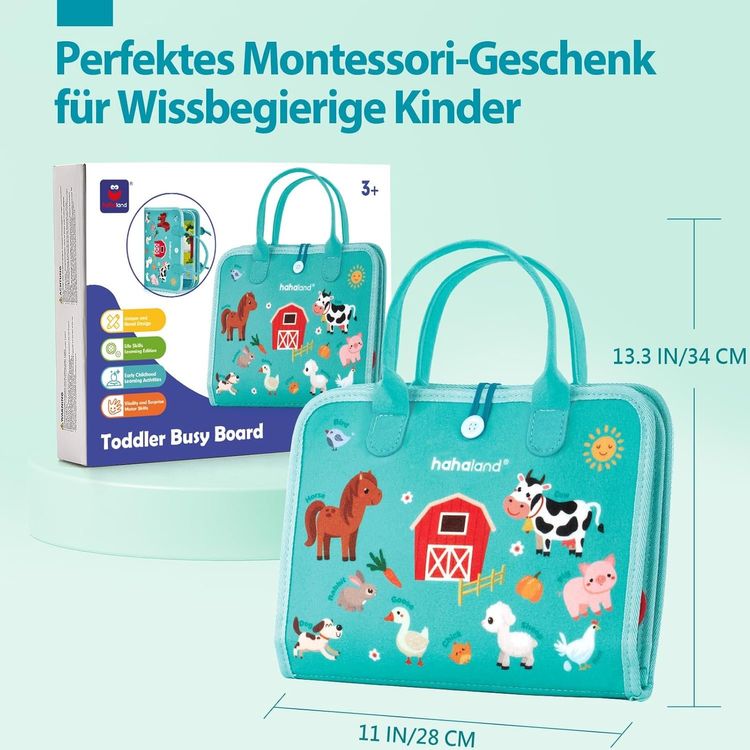 KUKUTrue Montessori Spielzeug 1-3 Jahre - Animal Busy Book Feinmotorik