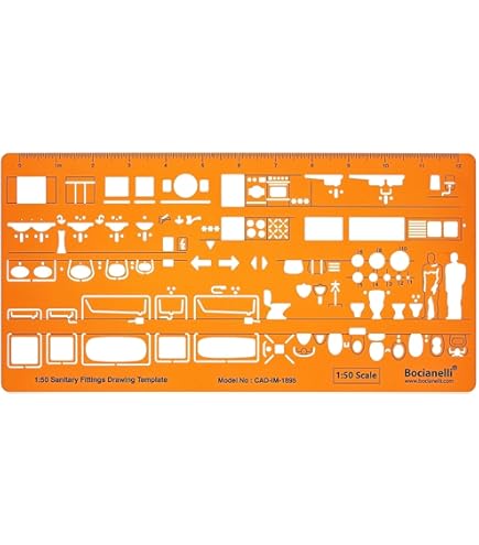 Profischablone für alle Zeichenbegeisterten! Mit Maßstäben 1:50 und 1:100 perfekt für Architekturzeichnungen und Grundrisse. Aus transparentem Kunststoff, 210x135mm groß und 1,2mm stark. Enthält alle wichtigen Symbole für Möbel, Sanitärinstallationen und Innendekoration. Super für technisches Zeichnen, Kunstprojekte oder Architekturstudium. Ideal für Studenten, Architekten oder Hobbyzeichner. Macht präzises Zeichnen ganz einfach - ob für Hauspläne, Inneneinrichtung oder kreative Projekte. Ein unverzichtbares Werkzeug für jeden der gerne zeichnet!