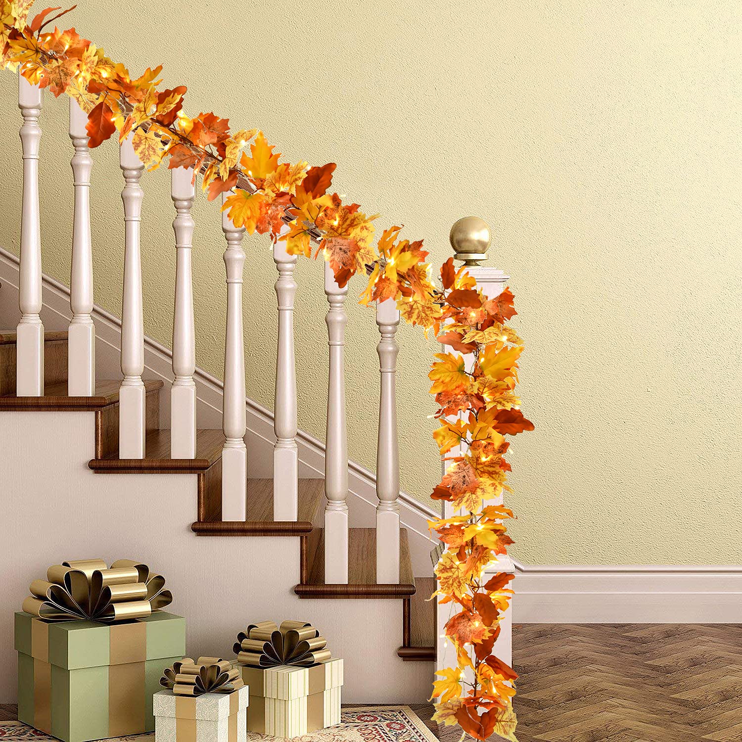 Herbst Girlande Mit LED Beleuchtung - 1,7m Ahornblatt Deko Für Kamin & Haustür