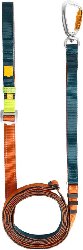 Länge: 1,80m, Durchmesser: 10mm, Gesamtgewicht nur 238g. Mit Aluminium-Drehverschluss-Karabiner (22g) für extra Sicherheit. Reflektierender Streifen für bessere Sichtbarkeit bei Dunkelheit.