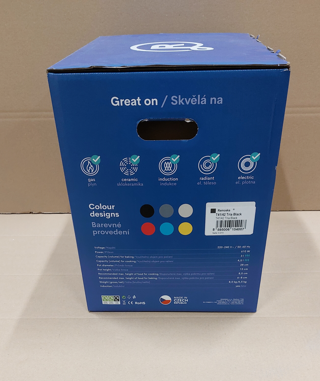 Der geniale 3-in-1-Küchenhelfer aus Tschechien! Die REMOSKA Tria ist ein 4,5 Liter Multifunktionstopf mit drei verschiedenen Deckeln: Elektrodeckel zum Backen bei 160-180°C, Softdruckdeckel zum Schmoren und Glasdeckel zum Kochen. Nur 610 Watt Verbrauch - spart richtig Energie im Vergleich zum großen Backofen. Die Antihaft-Beschichtung mit drei Schichten verhindert das Anbrennen. Funktioniert auf allen Herdarten inklusive Induktion. Seit 1957 in Tschechien produziert - sogar Prinz Charles besitzt eine! Perfekt für Familien, Studenten oder unterwegs.