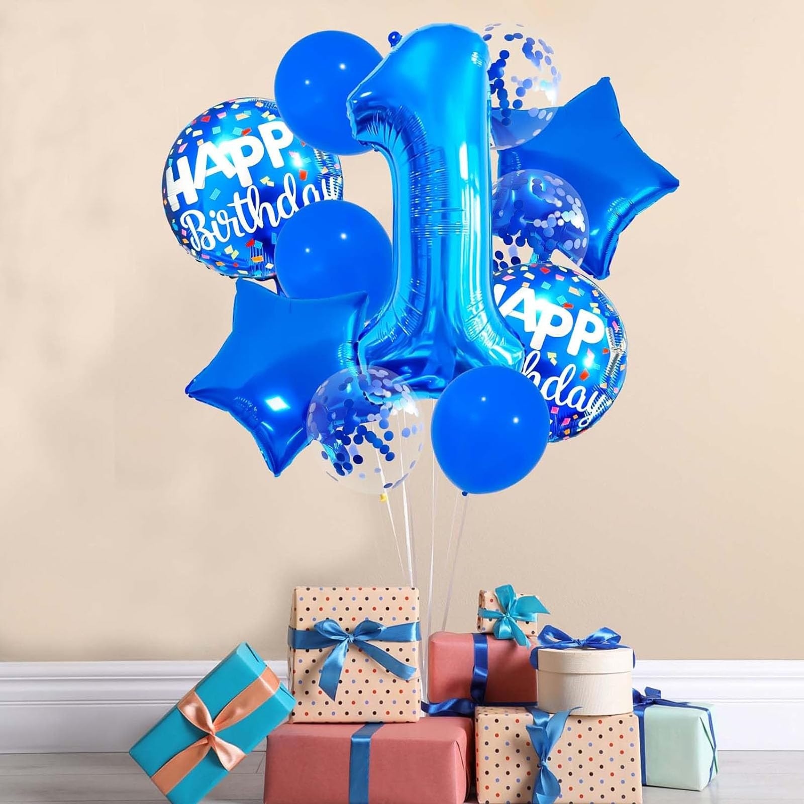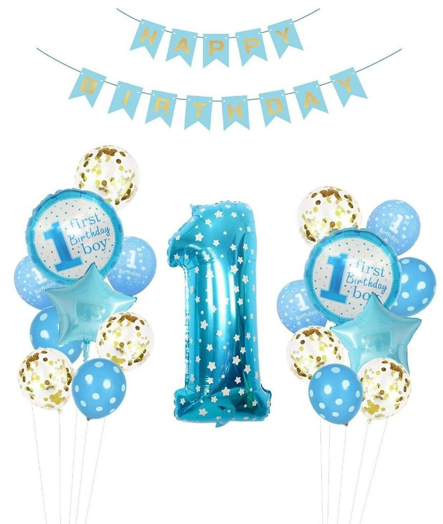 1. Geburtstag Luftballon Deko Blau - 40 Zoll Zahl 1 Mit Herz Ballons Set