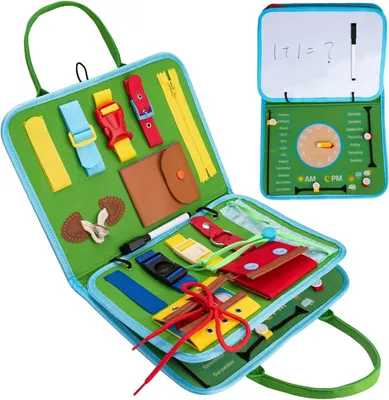 Das ultimative Lernspielzeug für neugierige Kleinkinder! Dieses Busy Board im modernen Filz-Design bietet 8 verschiedene Aktivitäten auf einmal: Reißverschlüsse, Zahnräder, Schnallen, Schnürsenkel, Uhr, Buchstaben, Tiere und Formen. Perfekt für Kinder von 1-5 Jahren zur Förderung von Feinmotorik, kognitiven Fähigkeiten und Kreativität. Aus ungiftigem, gratenfreiem Filz - absolut sicher für kleine Hände. Leicht und tragbar - ideal für unterwegs im Auto oder Flugzeug. Einfach zu bedienen und macht lange Spaß. Tolles Geschenk für Geburtstage, Weihnachten oder einfach so!