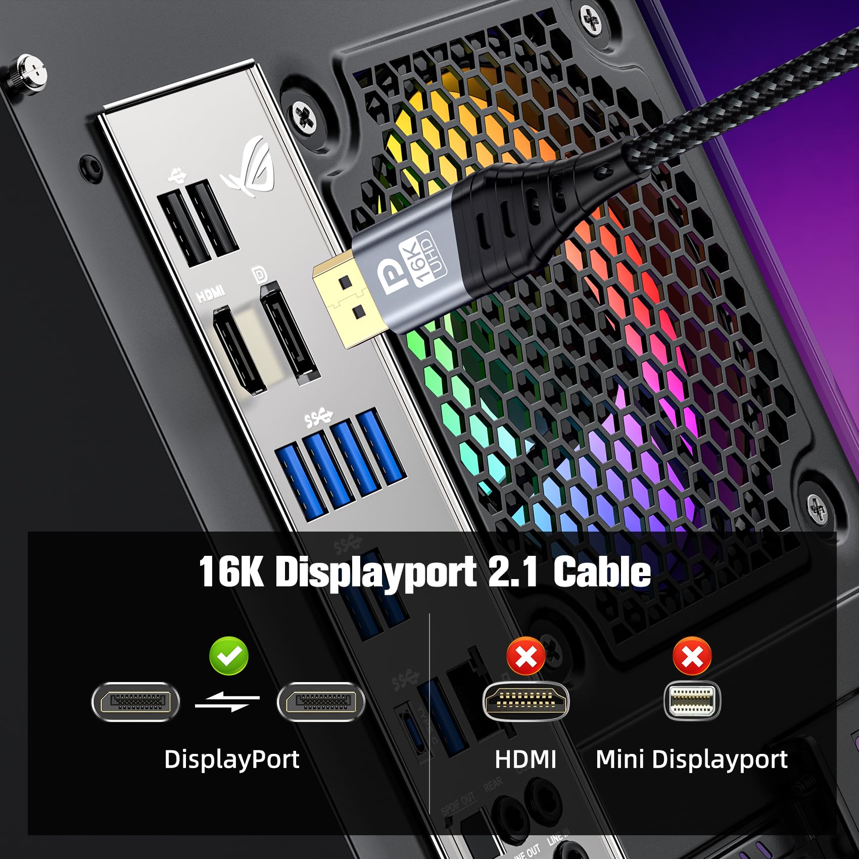 DisplayPort 2.1 Kabel 1m - Unterstützt 16K@60Hz Für Gaming Monitore Und Grafikkarten