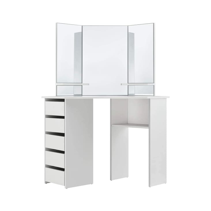 Der platzsparende Alleskönner für dein Schlafzimmer! Dieser 3-in-1 Schminktisch von TWSOUL kombiniert Schminktisch, Nachttisch und Aufbewahrungshocker in einem cleveren Design. Der klappbare LED-Spiegel bietet drei Lichtmodi (warmes Gelb, Naturlicht, helles Weiß) für perfektes Make-up bei jedem Licht. Mit 4 geräumigen Schubladen, verstecktem Stauraum unter dem Spiegel und ausziehbarer Seitenablage findest du reichlich Platz für all deine Kosmetik- und Pflegeprodukte. Der weiche Hocker mit zwei weiteren Schubladen kann nach Gebrauch platzsparend unter dem Tisch verstaut werden. Aus robustem MDF gefertigt, ist der Schminktisch kratzfest und langlebig. Bei nur 0,2m² Grundfläche ideal für kleine Wohnungen und Zimmer. Die Lieferung erfolgt in zwei Paketen mit detaillierter Montageanleitung. Schaff dir deine persönliche Beauty-Station - stylisch, praktisch und super organisiert!