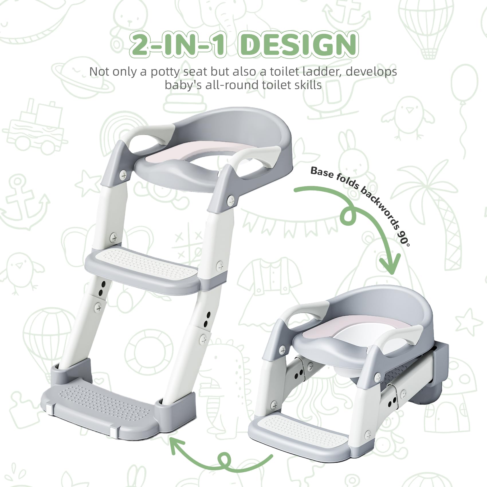 2-in-1 Toilettentrainer Mit Treppe - Kinder WC Sitz Mit Rutschfester Stufe