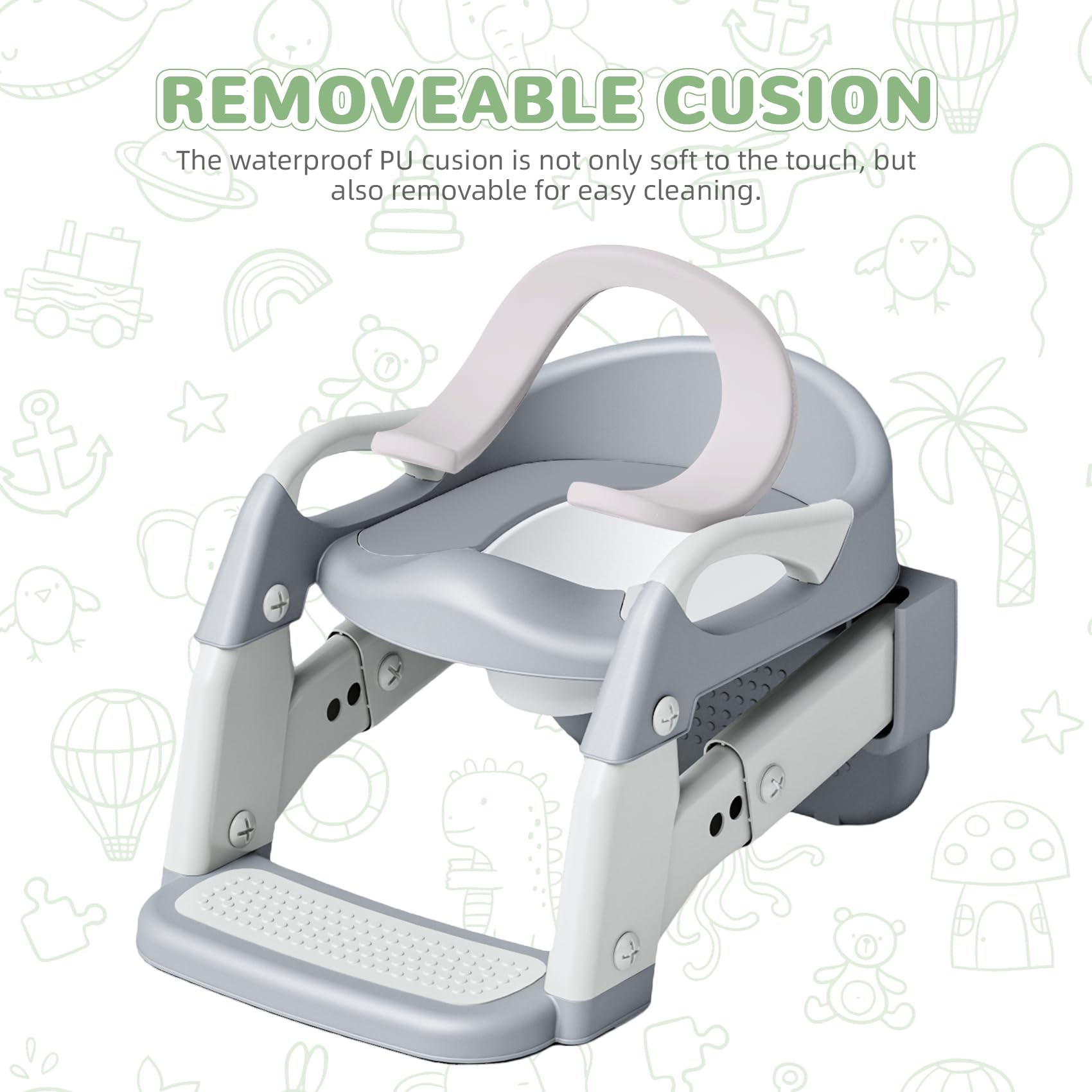 Töpfchen-Training mal ganz einfach! Dieser 2-in-1 Toilettentrainer mit integrierter Treppe macht deinem Kind das WC-Training zum Kinderspiel. Die rutschfesten Tritte und verbreiterten Handgriffe geben deinem Kleinen die nötige Sicherheit, während die erhöhte Frontschürze unangenehme Spritzer verhindert. Besonders praktisch: Die Höhe ist von 2 bis 5 Stufen verstellbar, also wächst der Hocker einfach mit - perfekt für Kinder von 1,5 bis 5 Jahren. Und wenn er nicht gebraucht wird, klappst du ihn einfach zusammen und verstaust ihn platzsparend. Hergestellt aus stabilem PP-Material und wasserdichtem PVC-Sitz, der bis zu 50 kg aushält. Passt an die meisten runden Toiletten (V-, U- und O-Form), aber nicht für eckige Modelle. Die Montage ist total einfach - sogar zusammen mit dem Kind machbar. Mit bebilderter Anleitung und rund um die Uhr Service, falls mal was nicht klar sein sollte. Endlich stressfreies Töpfchentraining!