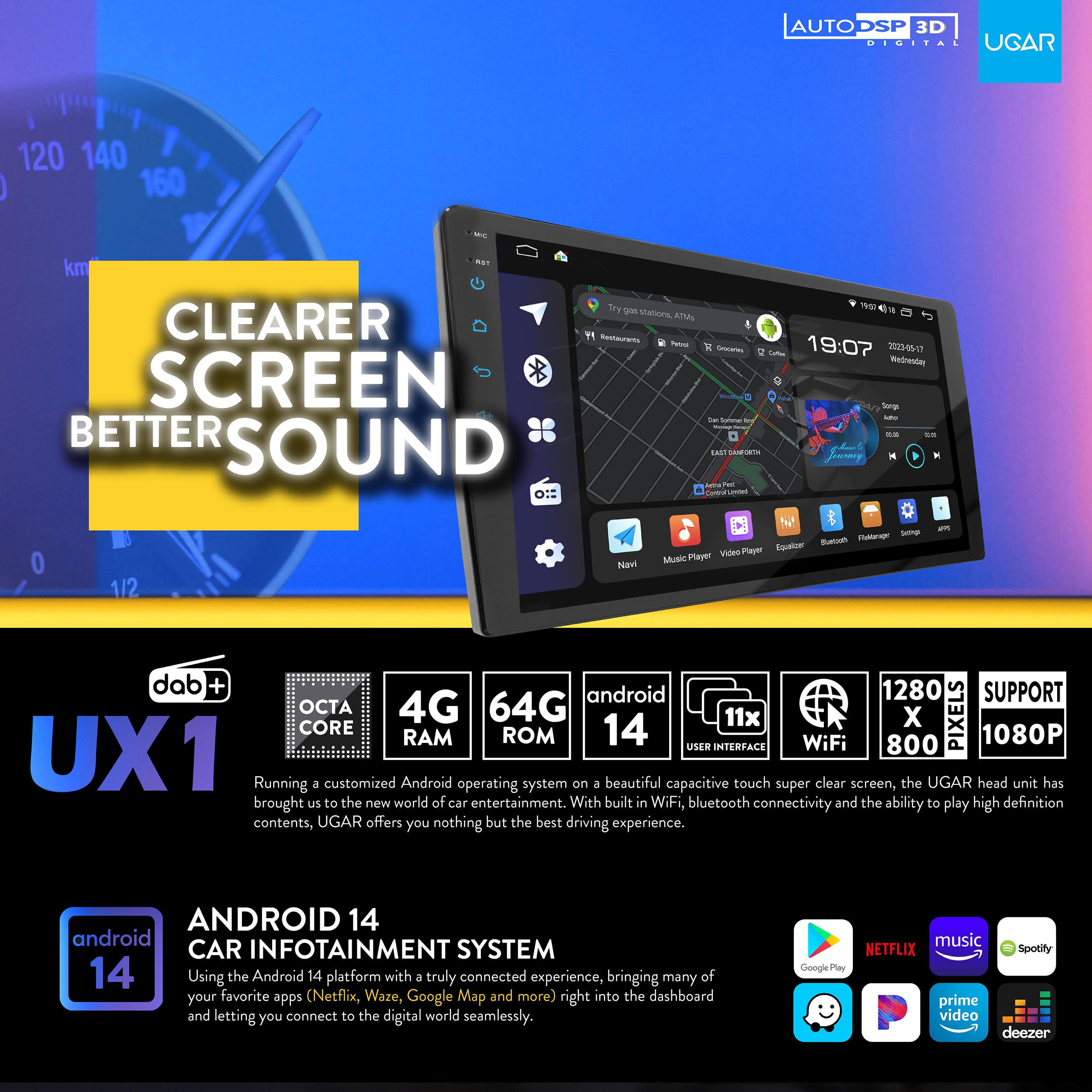 Mit dem 8-Core Prozessor und 4GB RAM läuft das Ding butterweich - keine Ruckler, kein Warten. Und 64GB Speicherplatz bieten genug Platz für all deine Musik und Apps. Ob Spotify, Google Maps oder whatever - alles läuft perfekt.