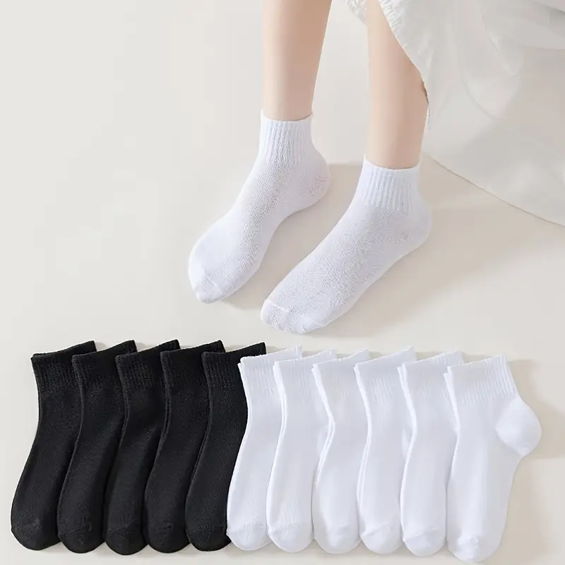 10 Paar Atmungsaktive Socken - Einfarbig Für Sport & Fitness
