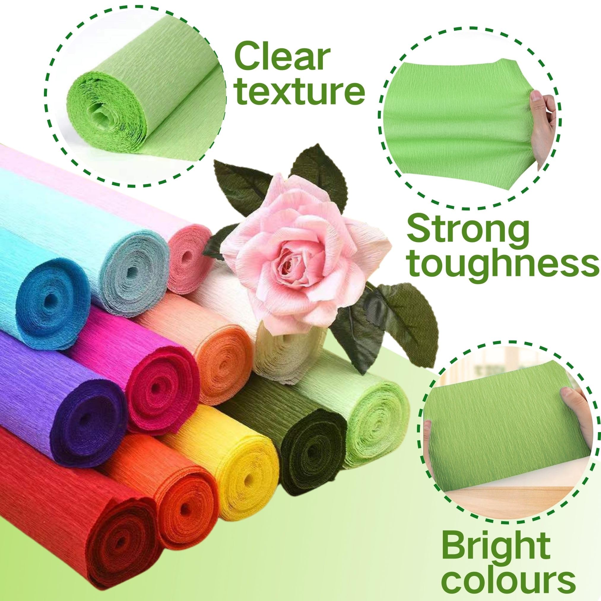 GENHH 10 Rollen Krepppapier Bunt - 25x250cm Mit Blumendraht & Floristenband