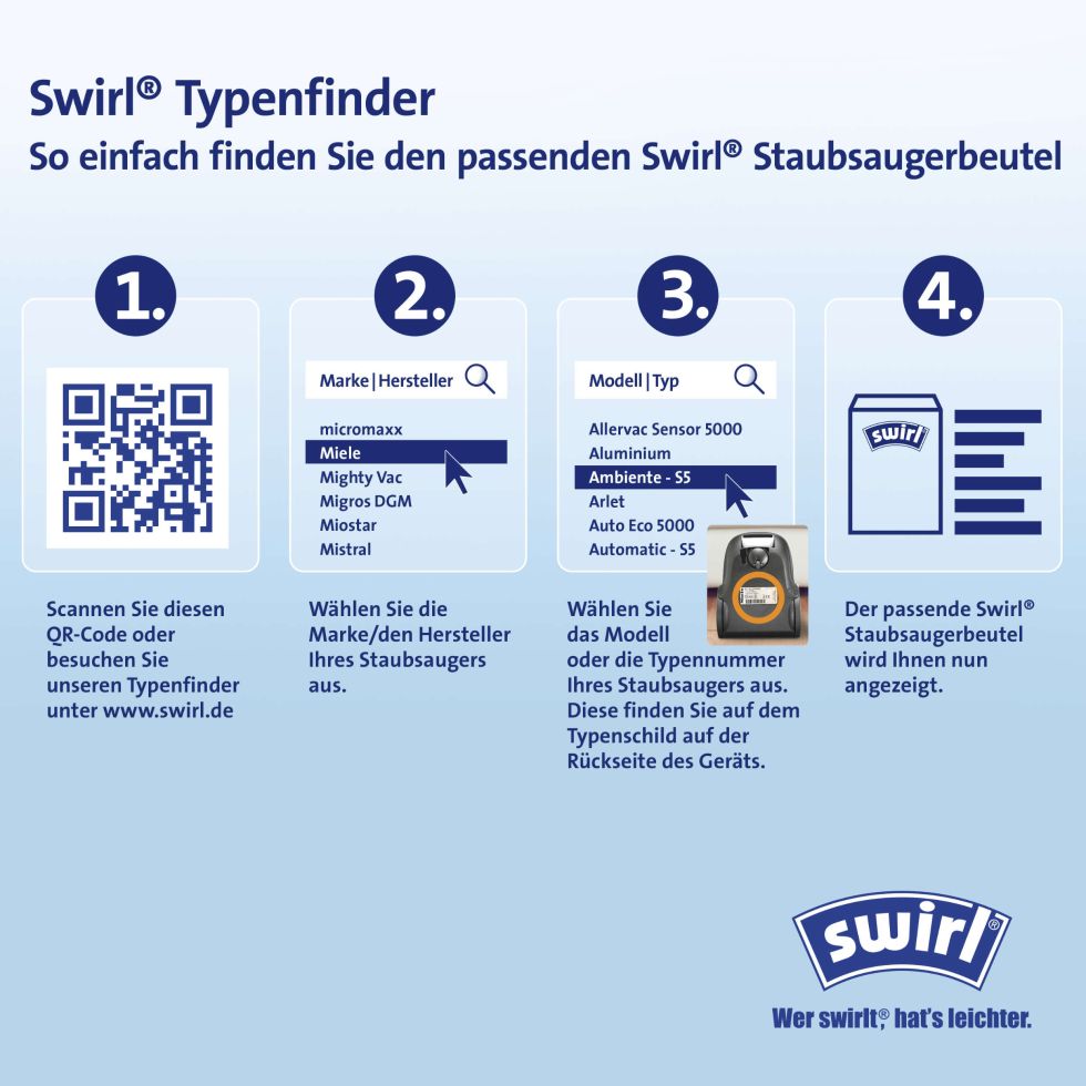 Dein Miele Staubsauger braucht neue Beutel? Diese Swirl EcoPor Beutel sind perfekt! 10 Stück im Pack - Vorrat für lange Zeit. Filtern 99,99% von Hausstaub, Pollen, Milbenkot - super für Allergiker! Mit praktischem Dirtlock-Verschluss - beim Entsorgen bleibt der Staub drin. Besonders umweltfreundlich: Bestehen zu 55% aus Recycling-Material. Und die Verpackung ist aus 100% Altpapier. Hergestellt in Deutschland - Qualität, der du vertrauen kannst. Extrem reißfest - platzen nicht so leicht. Die abgerundeten Ecken sorgen für perfekten Sitz. Einfach einsetzen, alle 2 Monate wechseln - und dein Staubsauger läuft wie neu. Sauber, sicher und nachhaltig - was will man mehr?