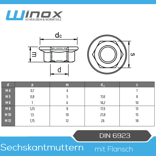 10 Stück M8 Flanschmuttern Edelstahl A2 - DIN 6923 Bundmuttern