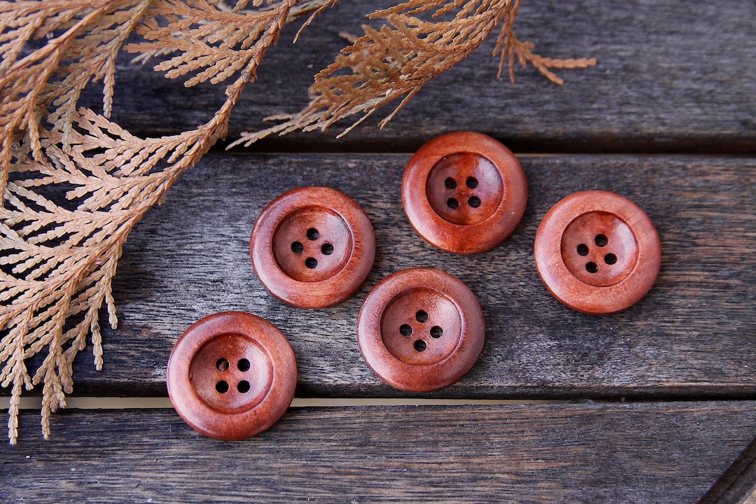 Natürlicher Look für deine Nähprojekte! Diese 10 Olivenholz-Knöpfe im Set verleihen deinen Kreationen einen besonderen Charme. Jeder Knopf hat 14mm Durchmesser und 4 Löcher zum Annähen. Das Besondere: Sie sind aus echtem Olivenholz gefertigt, sodass die natürliche Maserung durchscheint. Der Rand und die Rückseite sind weiß lackiert, was einen schönen Kontrast zum warmen Holzton bildet. Da es sich um ein Naturprodukt handelt, hat jeder Knopf seine eigene, einzigartige Maserung - das macht dein Projekt noch individueller! Hergestellt in Europa mit hochwertiger Verarbeitung. Perfekt für Blusen, Hemden, Cardigans oder auch für Home-Deko-Projekte. Einfach annähen und sich an dem natürlichen Look erfreuen. Ein schönes Detail, das deine Handarbeit von Massenware abhebt!