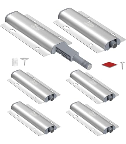 Moderne Möbel ohne Griffe? Diese 10 Push-to-Open Türöffner machen's möglich! Einfach drücken und die Tür springt auf - nochmal drücken und sie schließt. Starker Magnet hält sicher zu. Verstellbare magnetische Spitze von 1-4mm für perfekte Anpassung. Unsichtbares Design - stört die Optik deiner Möbel nicht. Perfekt für Schränke, Schubladen, Küchenmöbel und mehr. Aus Edelstahl und robustem Kunststoff. Einfache Montage - im Set enthalten: 10x Türöffner, Schrauben, Verlängerungsdübel und Eisenringe. Mach deine Möbel grifflos und modern!