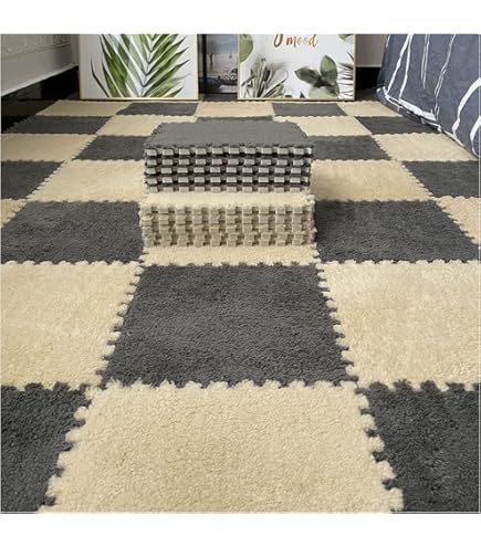 So einfach gestaltest du deine eigenen Bodenbeläge! Diese 10 Puzzle-Teppichfliesen aus weichem EVA-Schaum mit Plüsch-Oberfläche sind super praktisch. Jede Matte ist 30x30cm groß und 1cm dick - einfach zusammenstecken und schon hast du eine weiche, warme Fläche. Die rutschfeste Unterschicht hilt sicher auf dem Boden. Perfekt für Kinderzimmer, Spielbereiche, Home-Office oder als Yoga-Matte. Einfach zu reinigen - nur absaugen oder mit feuchtem Tuch abwischen. Wenn eine Matte schmutzig ist, einfach herausnehmen und reinigen. Du kannst sogar verschiedene Farben mischen und dein eigenes Muster legen. Einfach zusammenstecken und sich über den weichen, warmen Boden freuen!