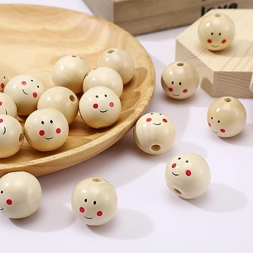 100 Holzperlen Mit Smiley Gesichtern - 20mm DIY Perlen Für Schmuck & Deko