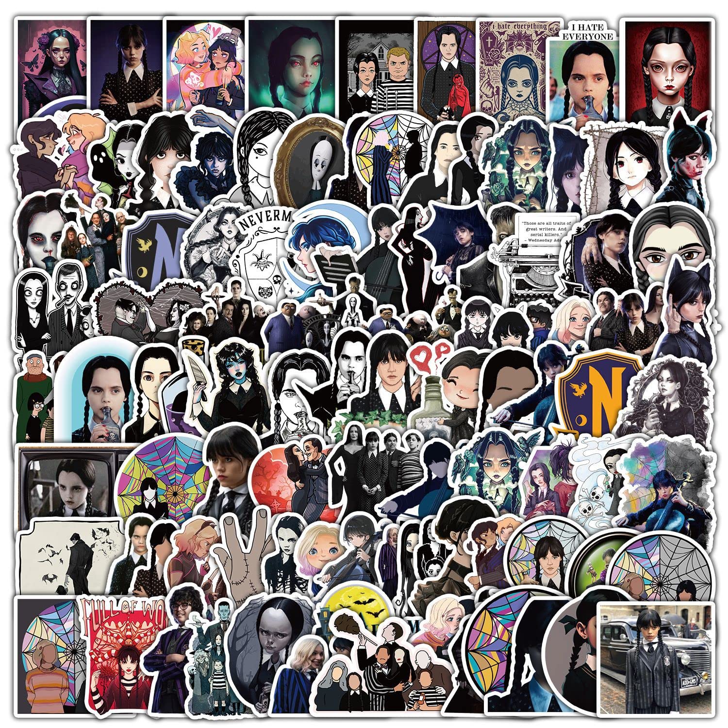 100 Wednesday Addams Aufkleber - Wasserdichte Vinyl-Sticker Für Laptop & Skateboard