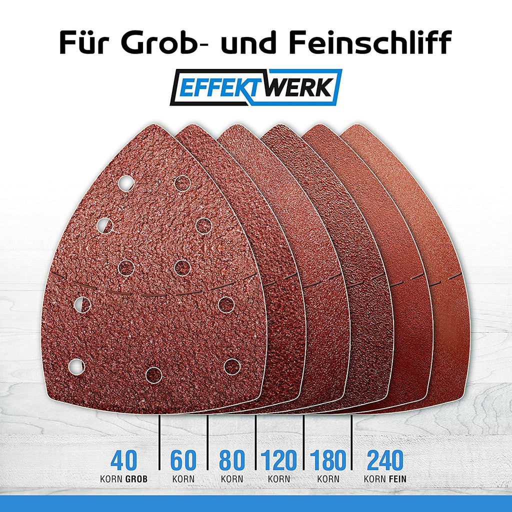 Für alle Heimwerker und Holz-Fans: Dieses 10-teilige Schleifblatt-Set in Körnung 1000 ist dein neuer bester Freund! Die dreieckige Form (154x106 mm) erreicht auch tricky Ecken und Kanten - super praktisch! Mit dem Klettverschluss auf der Rückseite wechselst du die Blätter ratzfatz aus. Die 11 vorgebohrten Löcher sorgen dafür, dass der Schleifstaub direkt abgesaugt werden kann. Hergestellt aus langlebigem Aluminiumoxid, das sich für Metall, Holz, Lack und Spachtel eignet. Körnung 1000 ist perfekt für den Feinschliff - damit werden Oberflächen richtig glatt und ready fürs Lackieren oder Ölen. Passen auf die meisten Multischleifer-Modelle. Egal ob du Möbel restaurierst, Holzprojekte bearbeitest oder Metall glätten willst - mit diesen Schleifblättern kriegst du alles hin! Einfach mal ausprobieren!