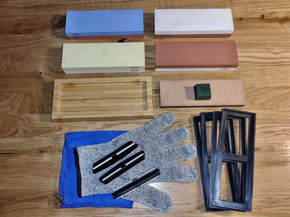 Deine Messer werden stumpf? Dieses 4-teilige Schleifstein-Set bringt sie wieder auf Vordermann! Enthalten sind vier verschiedene Körnungen: 3000, 5000, 8000 und 10000 Grit - perfekt für den kompletten Schärfprozess vom Grob- bis zum Feinschliff. Jeder Stein hat die praktische Größe von 150x20x5mm und liegt gut in der Hand. Mit den beiliegenden Sockeln sind die Steine rutschfest und sicher zu verwenden. Besonders praktisch: Das Set ist kompatibel mit Schleifmaschinen mit festem Winkel, aber auch für die Handarbeit bestens geeignet. So bekommst du jede Klinge wieder rasiermesserscharf! Die natürlichen Schleifstein-Materialien sorgen für eine hervorragende Schärfleistung. Ob Küchenmesser, Taschenmesser oder Werkzeug - mit diesem Set bist du für alle Schärf-Arbeiten bestens ausgerüstet. Perfekt für Hobby-Köche, Handwerker und alle, die scharfe Klingen zu schätzen wissen. Hol dir wieder perfekte Schnittergebnisse und mach das Schneiden zur puren Freude! Ein Muss für jede Küche und Werkstatt.