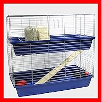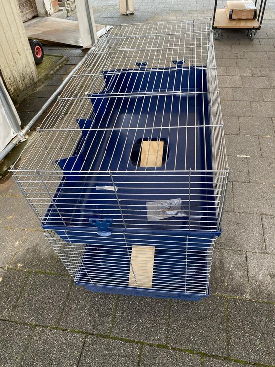 Ein Traumhaus für deine kleinen Hopper! Dieser zweistöckige Käfig in schickem Blau gibt deinen Kaninchen oder Meerschweinchen jede Menge Platz zum Toben und Verstecken. 🐰\n\nMit stolzen 100 cm Breite und zwei Ebenen haben deine Tierchen genug Raum zum:\n• Herumhoppeln\n• Spielen\n• Ausruhen\n• Verstecken\n\nDie beiden Etagen sind durch eine Rampe verbunden - deine Tiere werden es lieben, rauf und runter zu flitzen! Mehr Bewegung bedeutet mehr Spaß und bessere Gesundheit für deine kleinen Freunde.\n\nPraktisch für dich:\n• Leicht zu reinigen\n• Stabile Konstruktion\n• Viel Stauraum für Futter und Zubehör\n• Schönes Blau das in jedes Zimmer passt\n\nOb für zwei Kaninchen oder eine kleine Meerschweinchen-Gruppe - hier fühlen sich alle wohl. Deine Tiere werden dir für ihr neues Zuhause danken!\n\nExtra-Tipp: Einfach mit etwas Streu, Futternapf und Wasserflasche ausstatten - und schon kann's losgehen!