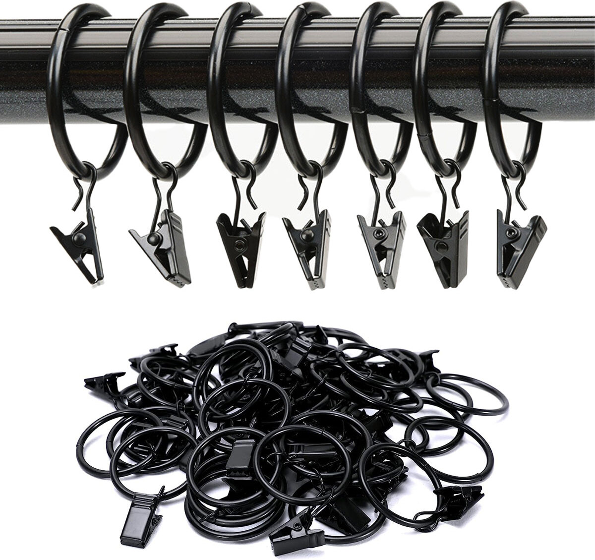 100 Gardinenringe im antiken Bronze-Look - perfekt für Landhaus- oder Vintage-Stil! Aus robustem Eisen mit Rostschutz, jeder Ring trägt bis 1,2 kg. Der 38mm Durchmesser passt auf die meisten Stangen (35-40mm). Die Ringe gleiten leise und sind sofort einsatzbereit. Auch ideal für Tischdecken oder Raumteiler. Mach deine Wohnung mit diesem Detail noch gemütlicher!