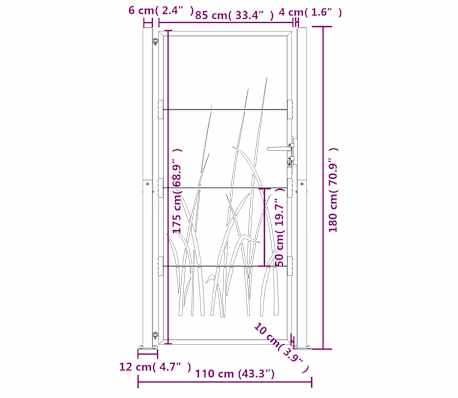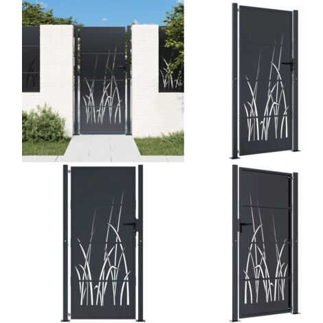 Hommdiy Gartentor Anthrazit 105x205cm - Stahl Tor Mit Gras-Design | Lasergeschnitten & Abschließbar