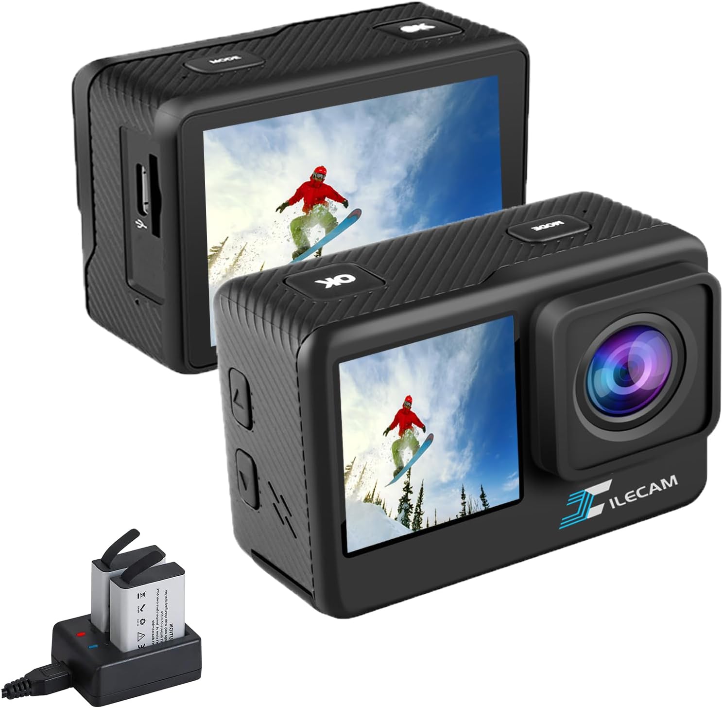 Dual Screen Action Cam 1080P - Wasserdichte Kamera Mit 2 Akkus & 32 GB Karte