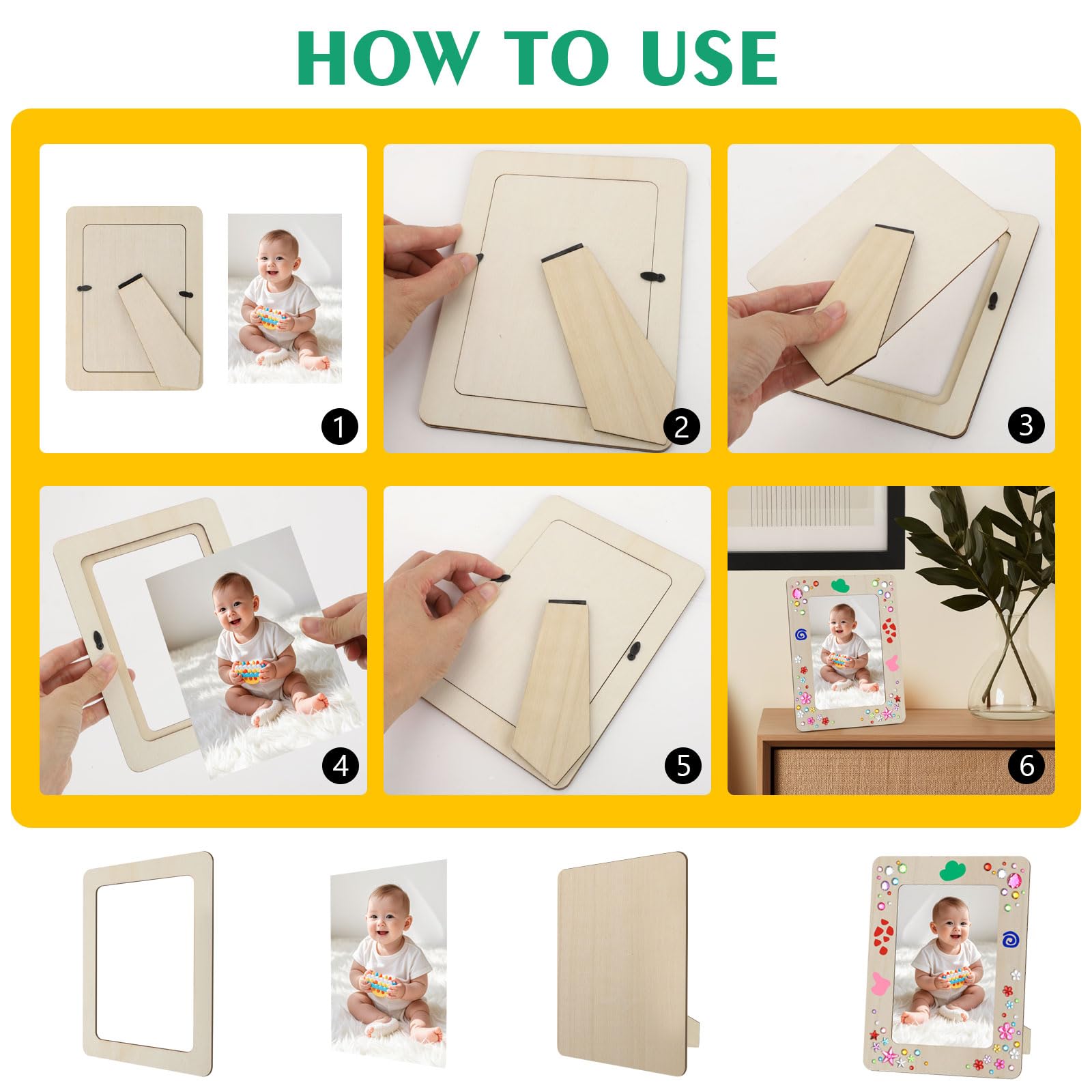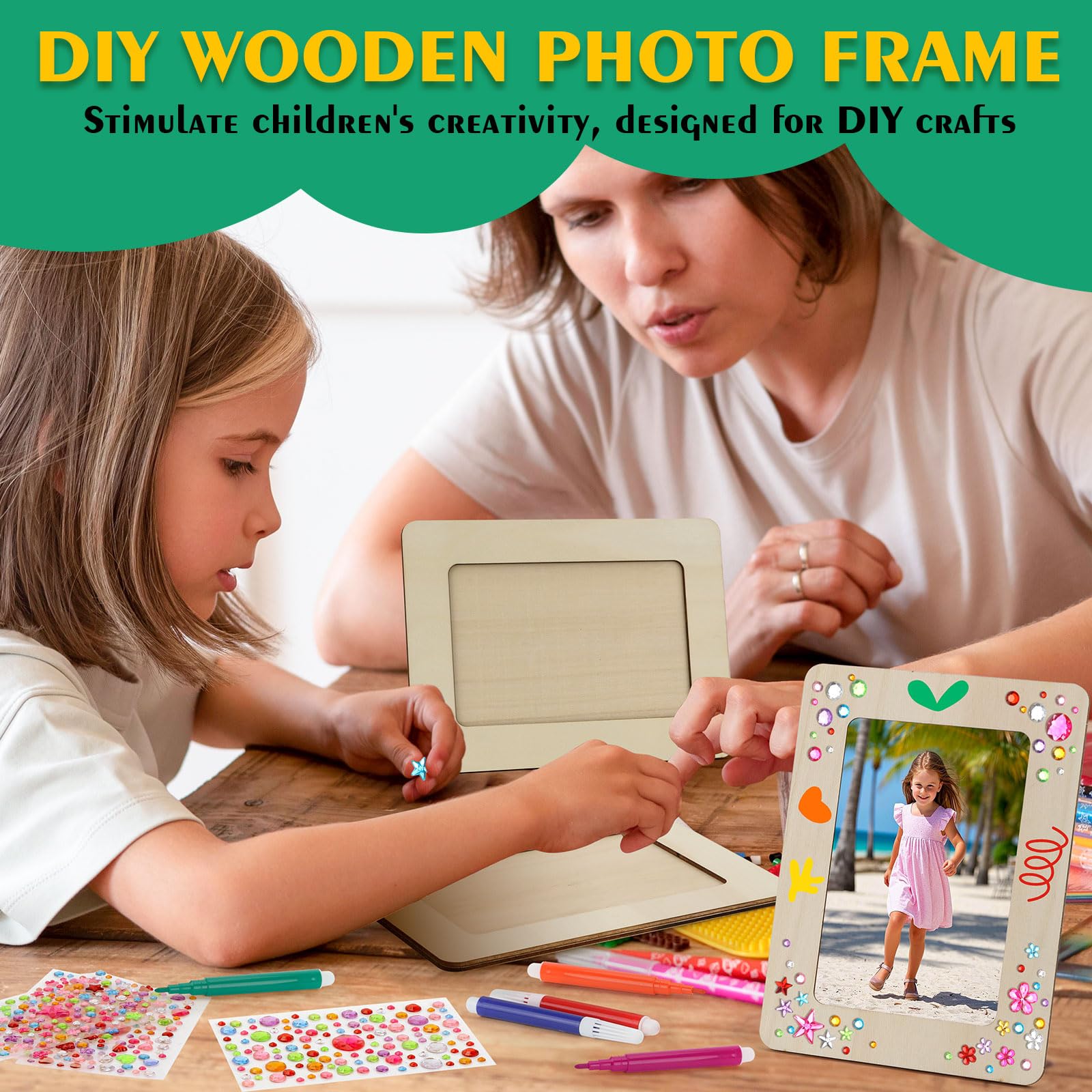 10er Set Bilderrahmen Holz Zum Bemalen - DIY Bastelset Für Kinder Mit Glitzersteinen
