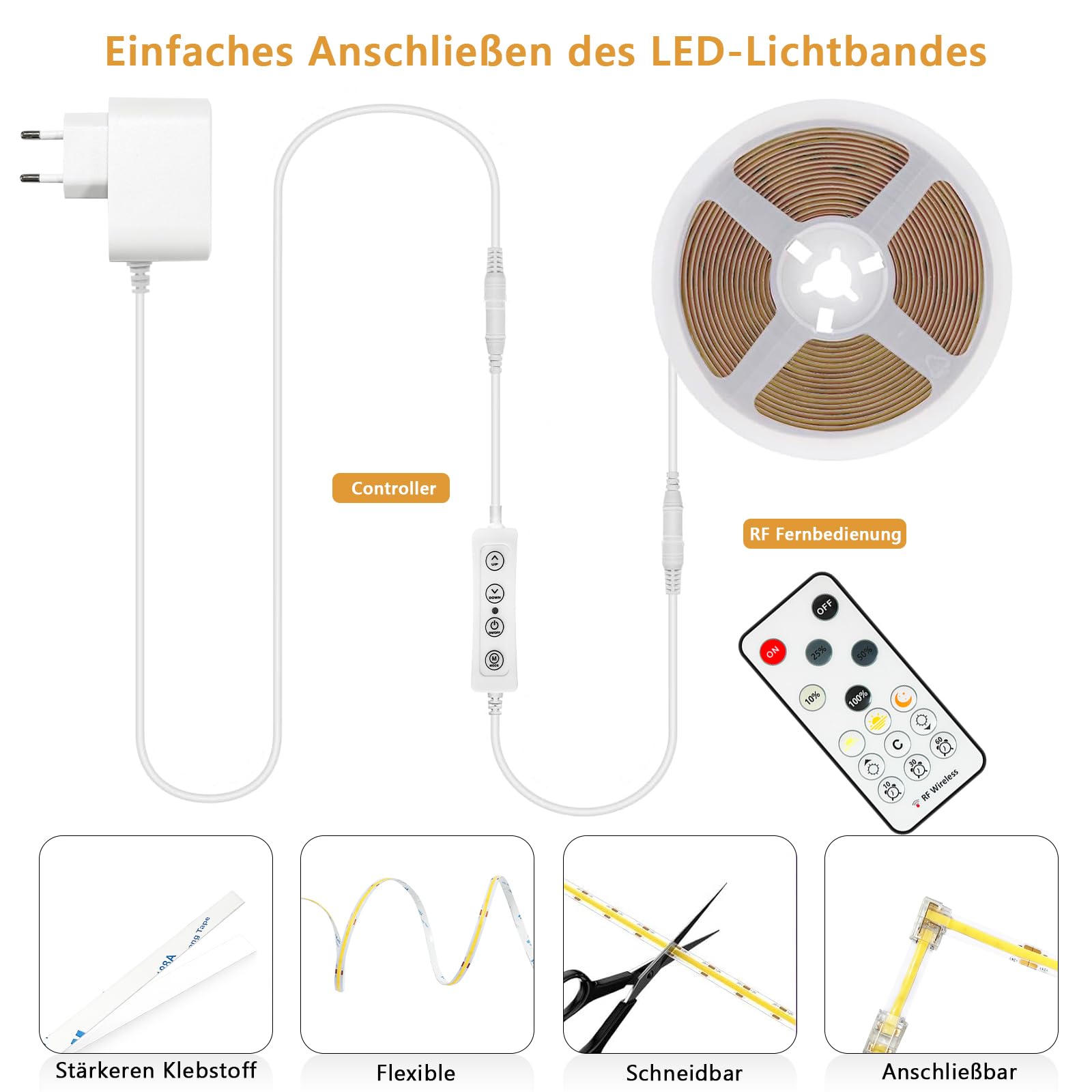 LUXONIC COB LED Strip 10m - 3000K Warmweiß Dimmbar Mit Fernbedienung Für Wohnraum