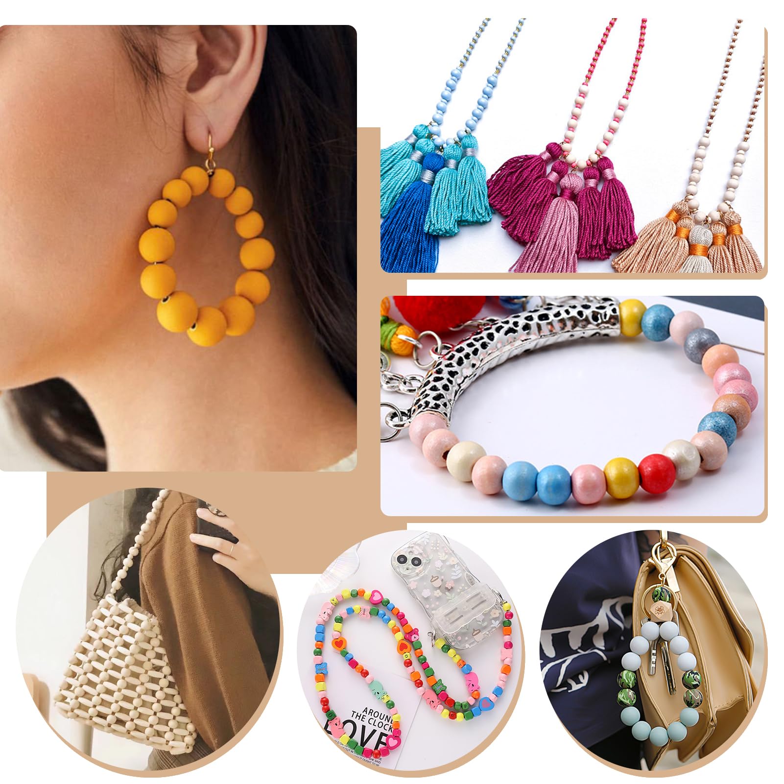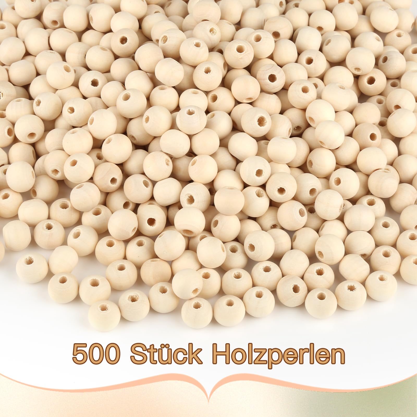 150 Holzperlen Set Zum Basteln - 10mm, 15mm, 20mm Mit Hanfseil Für DIY Schmuck