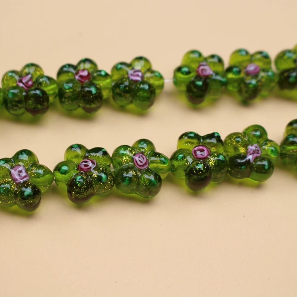 120 Stück Leuchtende Glasperlen 10mm - Grüne Lampwork Perlen Mit Goldsand Für Schmuck