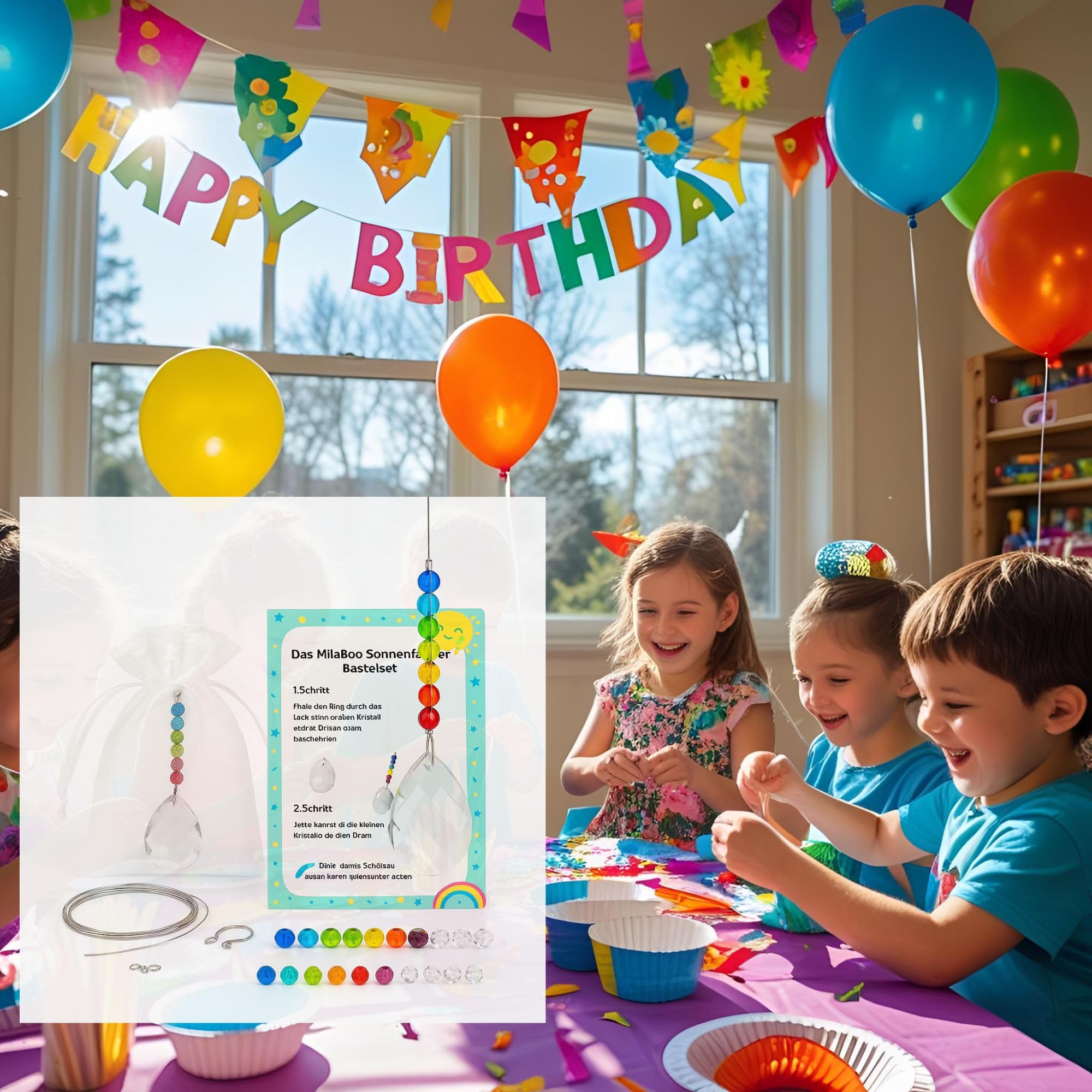 Perfekt für Kindergeburtstage, Junggesellenabschiede, Babypartys oder einfach für einen kreativen Nachmittag mit Freunden. Die Kinder (und Erwachsene!) lieben es, ihre eigenen individuellen Sonnenfänger zu gestalten. Einfach Perlen und Kristalle kombinieren, aufhängen und staunen!