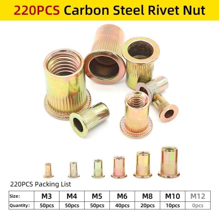 10x Edelstahl Senkkopf Nietmuttern M3-M12 - Geschlossene Zylindernietmuttern Gerändelt