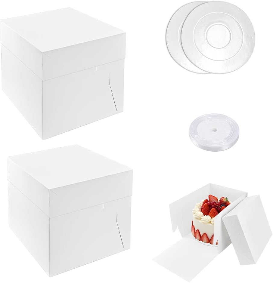 VEPATIM 10x Kuchenkarton 20x20x10cm Weiß - Lebensmittelechte Tortenkartons