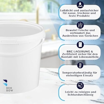 Brauchst du praktische Aufbewahrungsbehälter? Diese 5-Liter Eimer sind echte Allrounder für Haushalt, Garten und Werkstatt! \\n\\nWas die Eimer so besonders macht:\\n• Lebensmittelechtes Material - sicher für Lebensmittel\\n• Fassungsvermögen: 5 Liter pro Eimer\\n• Inklusive passendem Deckel für dichten Verschluss\\n• Praktischer Tragegriff für einfachen Transport\\n• Farbe: Reinweiß\\n\\nDu bekommst ein Set mit 10 Eimern - perfekt wenn du mehrere Behälter gleichzeitig benötigst. Ob für Farbe, Baustoffe, Lebensmittel oder als Aufbewahrung im Keller - diese Eimer sind immer praktisch.\\n\\nDie Eimer sind aus hochwertigem Kunststoff gefertigt und damit besonders langlebig. Sie rosten nicht und sind leicht zu reinigen. Einfach mit Wasser und Spülmittel auswaschen und sie sind wie neu!\\n\\nSuper für:\\n• Handwerker und Heimwerker\\n• Lebensmittelaufbewahrung\\n• Gartenarbeit\\n• Malerarbeiten\\n• Organisation im Haushalt\\n\\nDie Deckel schließen absolut dicht - so bleibt der Inhalt frisch und geschützt. Kein Auslaufen, kein Verstauben!\\n\\nBestell dir dieses praktische Set und du wirst sehen, wie oft du diese Eimer verwenden wirst. Echte Multitalente für den täglichen Gebrauch!