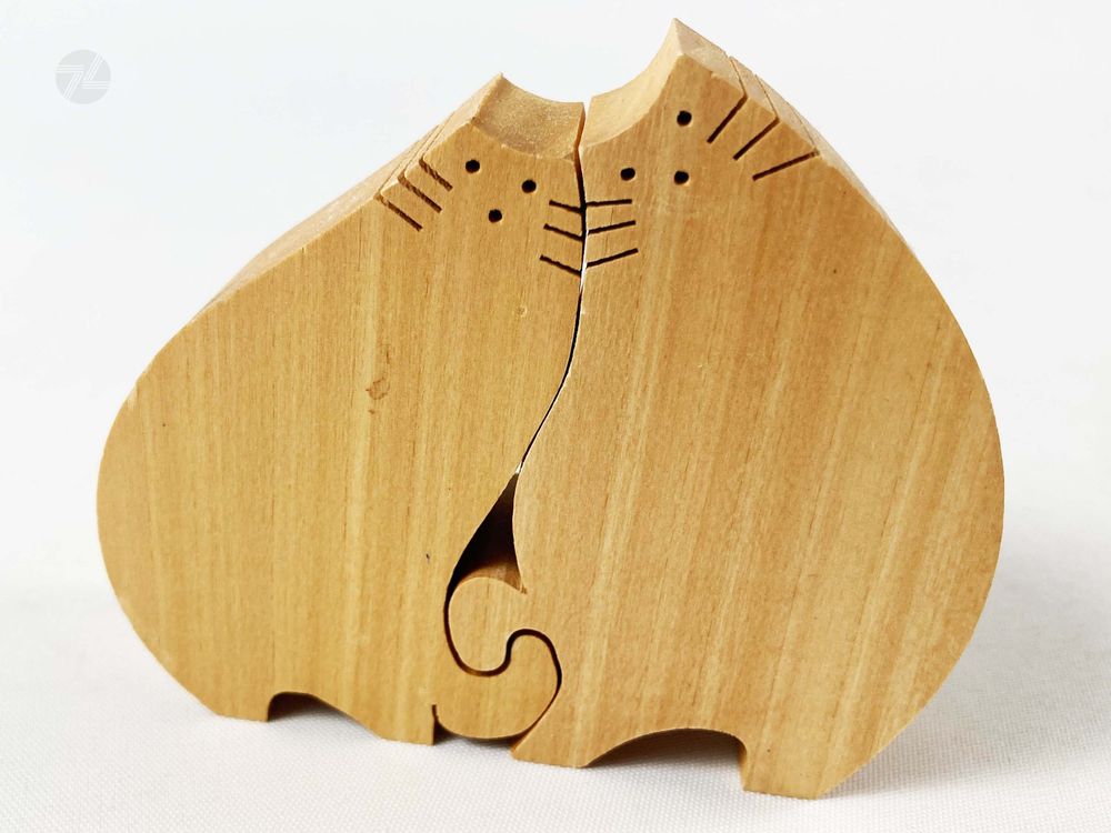Holz Katzenpaar Figur 10x8cm - Süße 2D Deko Für Schreibtisch & Regal