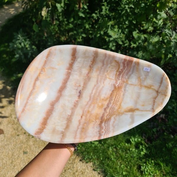 Wow, diese Aragonit-Schale aus Marokko ist einfach magisch! Mit 11 cm Durchmesser und 260 g Gewicht ist sie perfekt für deine Schmuckstücke, Kristalle oder als Räucherschale. Jede Schale ist ein Unikat - handgeschnitzt mit einer einzigartigen Maserung, die es so kein zweites Mal gibt. Aragonit soll emotionale Heilung und spirituelle Balance fördern - perfekt also für Meditation oder um deine Steine energetisch aufzuladen. Stell sie einfach ins Wohnzimmer, Schlafzimmer oder nutze sie für deine spirituelle Praxis. Wichtig: Bitte vor Feuchtigkeit schützen, denn Wasser mag dieser edle Naturstein nicht. Ein absoluter Hingucker, der nicht nur gut aussieht, sondern auch positive Energie verbreitet! Einfach hinlegen, Steine drauf - und die gute Vibes genießen.