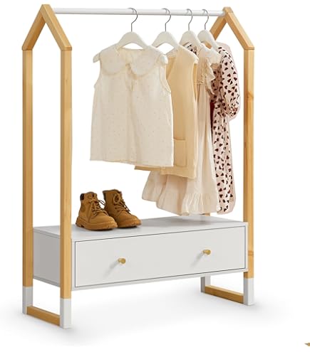 Die perfekte Ordnungslösung für jedes Kinderzimmer! Diese süße en.casa Garderobe im Cotton Candy/Weiß Design bringt Stil und Funktionalität zusammen. Mit 114cm Höhe, 77cm Breite und 30cm Tiefe passt sie auch in kleinere Räume. Die großzügige Kleiderstange (42,5cm lang) bietet Platz für Jacken, Mäntel und Schals. Das seitliche Regal mit 5 Ablageflächen ist ideal für Mützen, Taschen oder Spielzeug. Das untere Aufbauungsfach mit verspielter Wellenkante bietet extra Stauraum für Schuhe oder Körbe. Aus robustem MDF gefertigt - hält dem Kinderalltag stand! Einfacher Aufbau mit detaillierter Anleitung - im Handumdrehen fertig! Die pflegeleichte Oberfläche lässt sich einfach mit einem feuchten Tuch reinigen. Fördert die Selbstständigkeit deines Kindes - alles hat seinen Platz! Das niedliche Wellendesign macht Aufräumen zum Spaß! Einfach bestellen und dem Chaos im Kinderzimmer ein Ende setzen! Perfekt als Geschenk zur Einschulung oder zum Geburtstag. [en.casa] Qualität - stylisch, praktisch und langlebig!