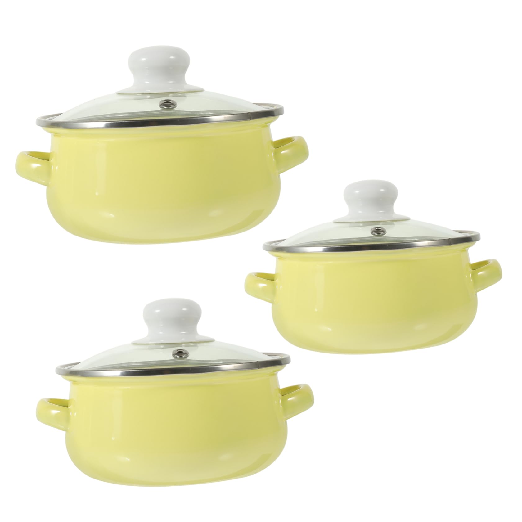 3-teiliges Emaille Topf Set - 12/14/16cm Suppentöpfe Mit Deckel