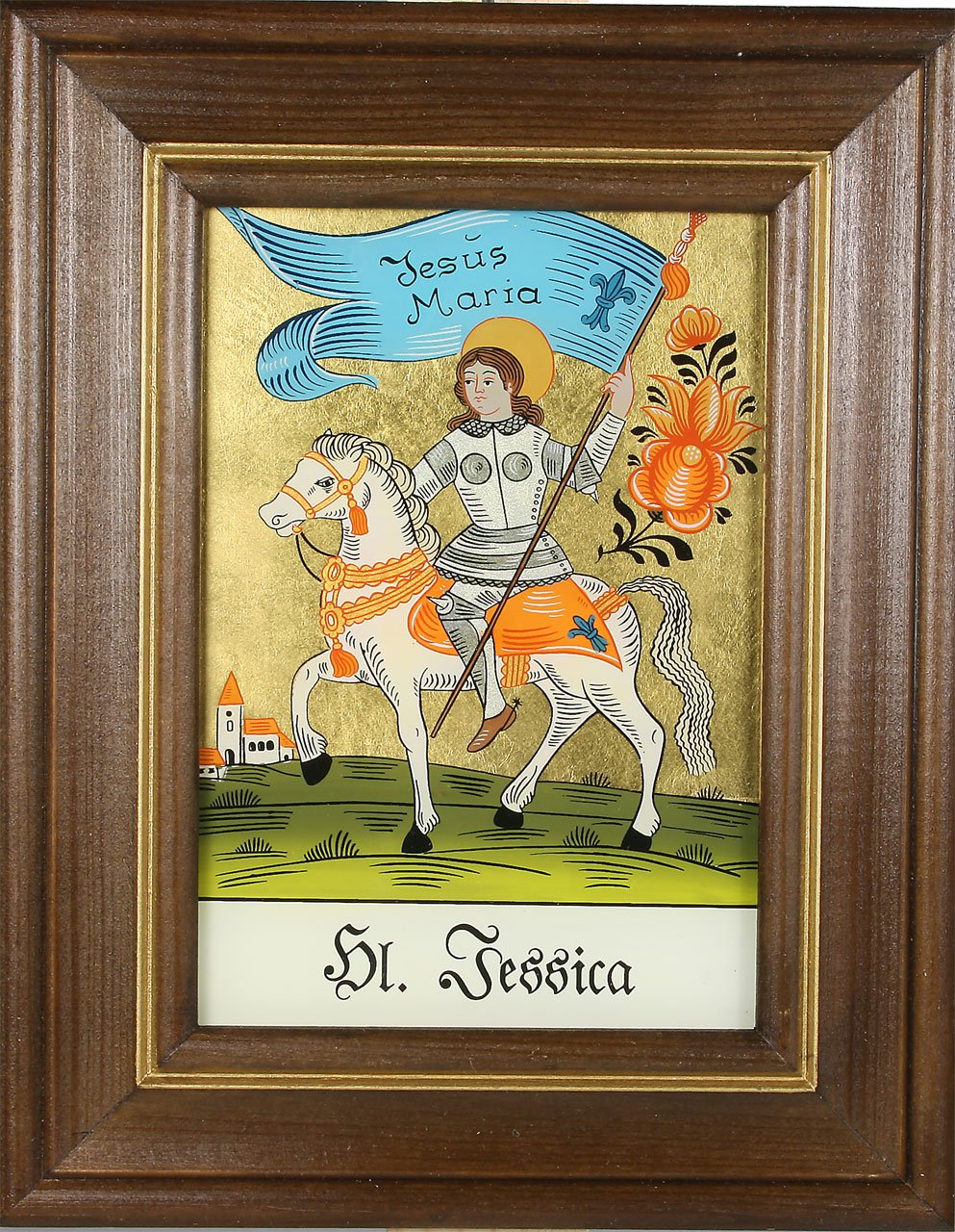 Ein wunderschönes handbemaltes Hinterglasbild der Hl. Veronika! Dieses einzigartige Kunstwerk wird in traditioneller Handwerkskunst hergestellt - jede Fläche liebevoll von Fachkräften mit wasserlöslichen Farben ausgefüllt.