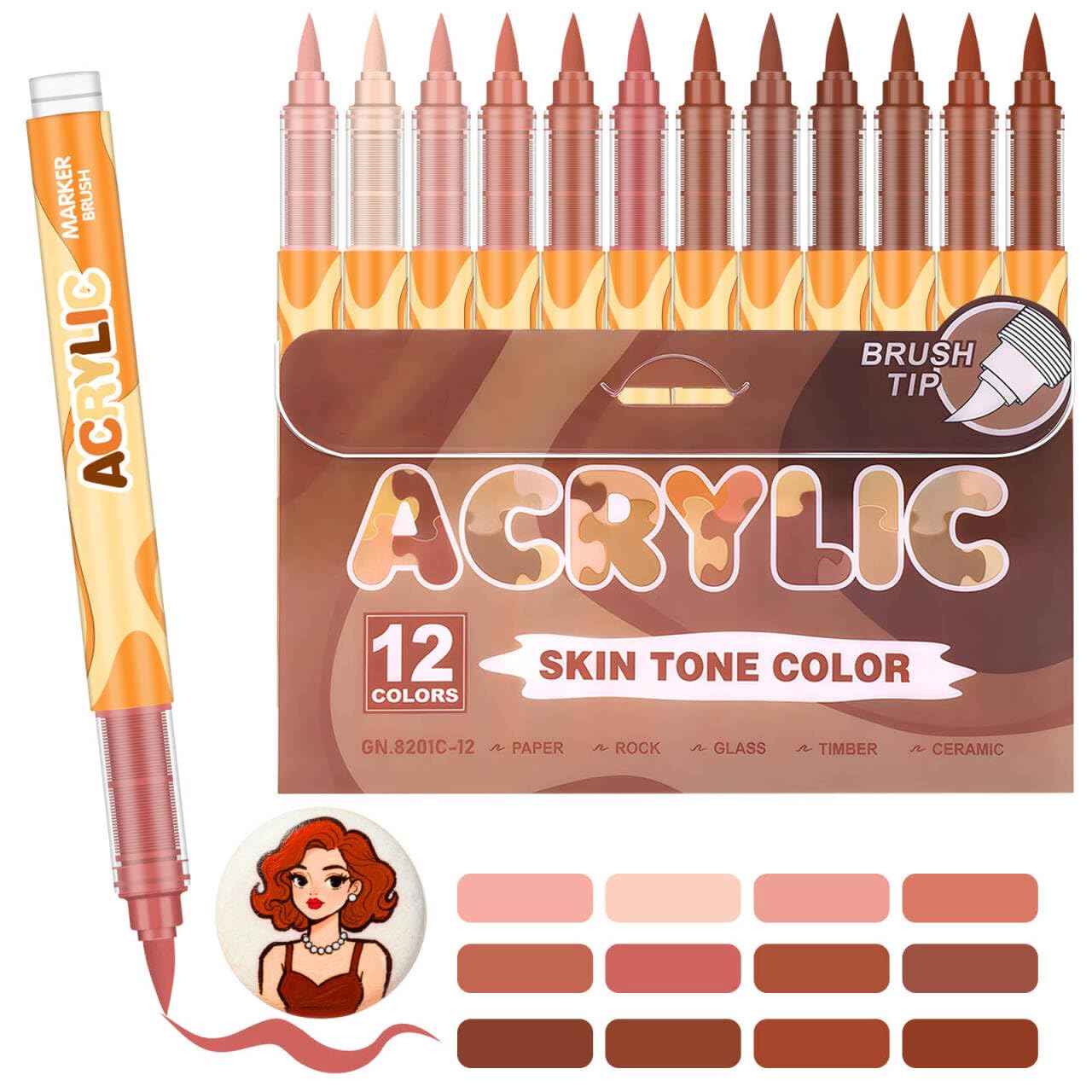 12 Acrylstifte Für Hauttöne - Wasserfeste Marker Für Steine, Keramik & Holz