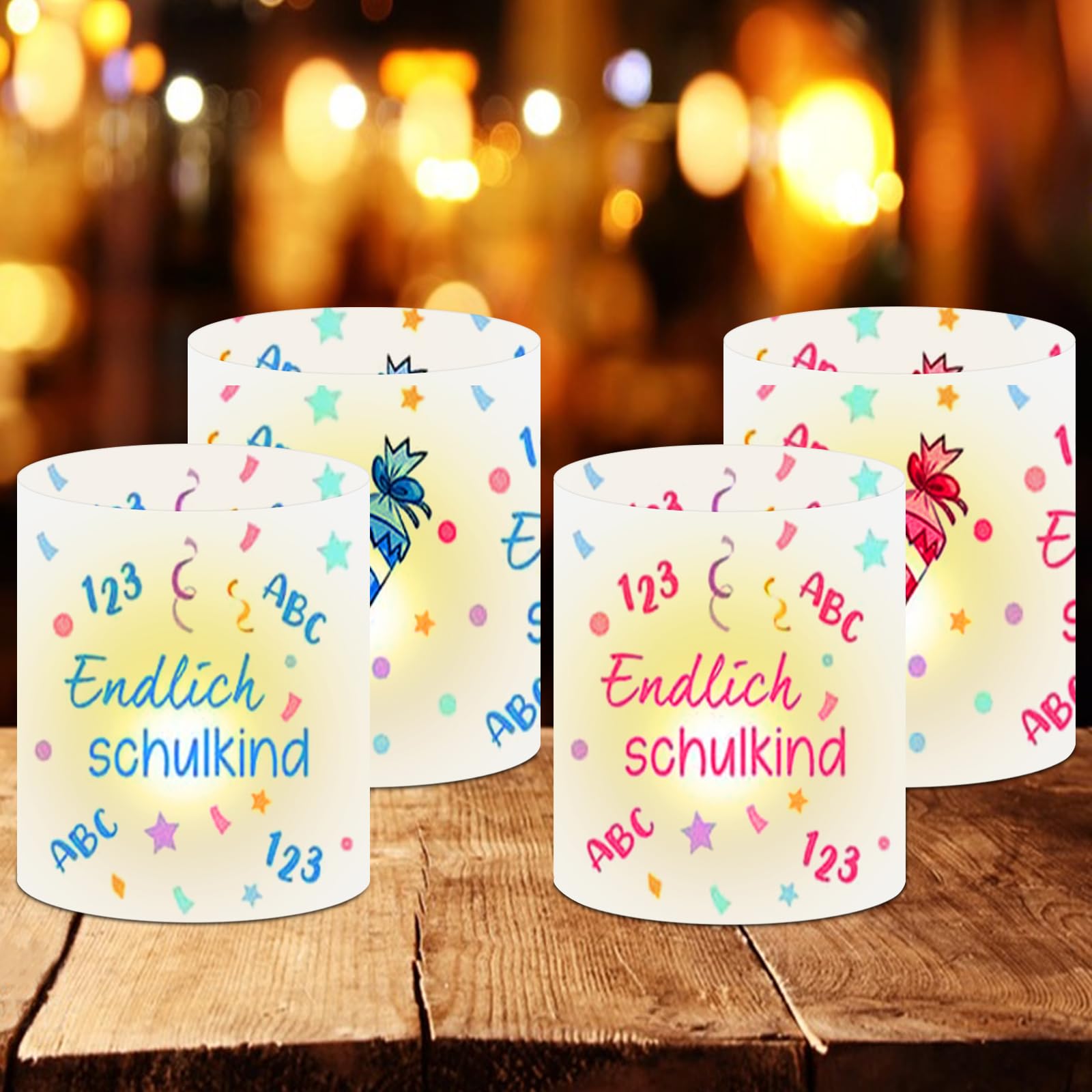 Einschulung Deko 2025 - 12 Windlichter 'Endlich Schulkind' Mit Schultüten-Motiven