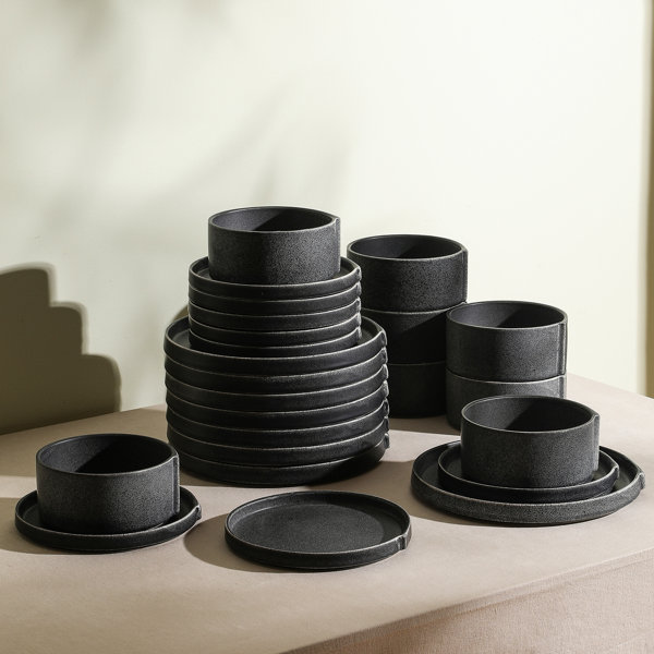 Wow, was für ein schickes Geschirr! Das Porto by Stone Lain Semplice Set besteht aus 12 hochwertigen Teilen - perfekt für 4 Personen. Enthalten sind 4 große Teller (10,63 Zoll), 4 Dessert-/Salatteller (8,27 Zoll) und 4 Pastaschalen (7,8 Zoll). Hergestellt in Portugal aus robustem Steingut, überzeugt dieses Set durch seine exquisite Handwerkskunst. Die schwarze matte Oberfläche sieht nicht nur super edel aus, sondern ist auch kratzfest - bleibt also auch nach häufigem Gebrauch makellos. Super praktisch: Das Geschirr ist spülmaschinen- und mikrowellengeeignet, also perfekt für den stressfreien Alltag. Ob für das tägliche Familienessen oder besondere Anlässe - mit diesem Set machst du immer eine gute Figur. Jedes Stück ist handgefertigt und zeigt die typisch portugiesische Liebe zum Detail. Die Pastaschalen sind übrigens vielseitig einsetzbar - nicht nur für Pasta, sondern auch für Müsli, Suppe oder Salat. Einfach auspacken, in den Schrank stellen und sich über das tolle Design freuen - deine Gäste werden begeistert sein!